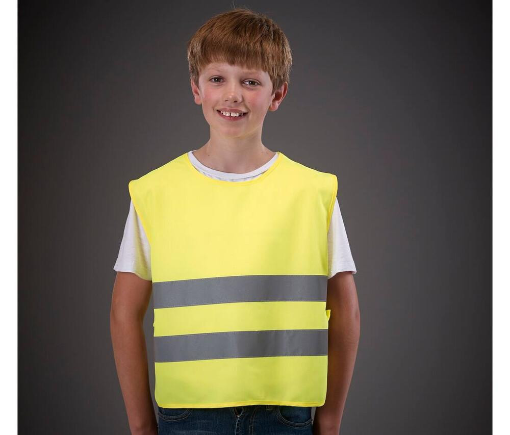 Hoge zichtbaarheidskazuifel voor kinderen met elastische zijkanten die een beter gebruikscomfort bieden. Het sluiten gebeurt met een drukknop. Gemakkelijk aan en uit te trekken. Dit model heeft 2 horizontale banden. De banden zijn reflecterend en meten elk 5 cm. Ze zijn genaaid voor een betere ondersteuning. Deze kazuifel voldoet aan de EN1150:1999 certificering. Afmetingen 50x50cm. Hij kan zonder problemen op meerdere lagen gedragen worden. Het is een essentieel accessoire om in uw auto te hebben in geval van nood. Deze kazuifel verbetert de veiligheid en maakt het zichtbaarder voor kinderen, dag en nacht.